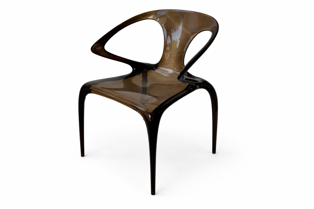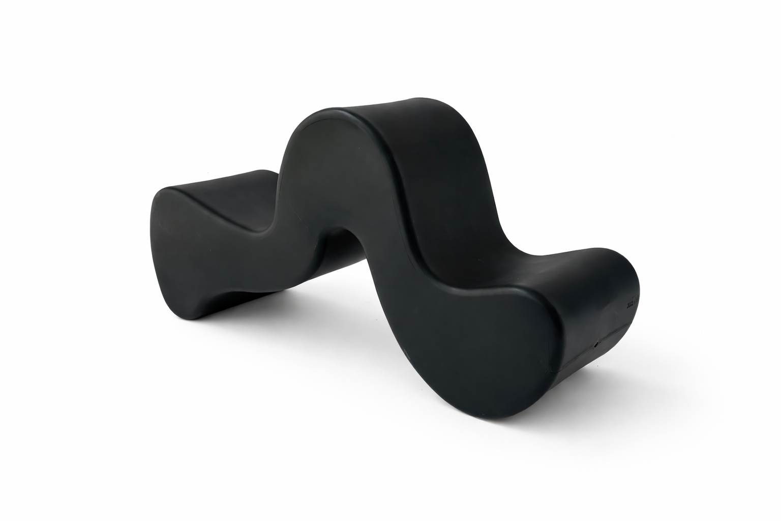 Verner Panton initially established himself as a talented artist prior to pursuing studies in architecture at the Royal Danish Academy of Art. Renowned for his pioneering use of psychedelic hues and inventive designs employing novel materials. The Phantom embodies versatility, capable of fulfilling various roles such as an easy chair, lounge chair, side table, or a two-seater bench. Crafted from sturdy black polypropylene plastic, it presents a firm exterior while offering a subtle degree of flexibility for user comfort. Adorned with the maker’s and designer’s insignias, the piece remains structurally sound albeit showing some surface scratches and scuff marks.